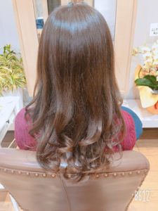 今日のお客様は毛先を緩くふわっと巻かせていただきました。