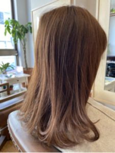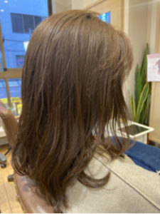 春色(*^_^*) 2020/3/30 退色するとオレンジになってしまう髪色も…… イルミナでこんなに柔らかオリーブベージュに! 巻いて動きを出すといい感じですよ! 春来ますよーー!! カラーの時間ですよー!! 【ニシオギヴォイス あすか】