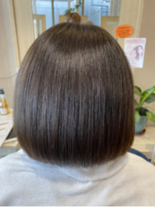 縮毛矯正とカラーをしてパサつきが気になっていたお客様ですが、髪質改善トリートメントをするだけで髪にハリがでてうねりもなくなりました!!