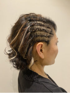 今回は、プラチナホワイトのエクステを一緒に編み込みました!!