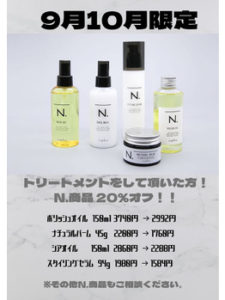 N.商品商品が20%オフ!お早めに~!