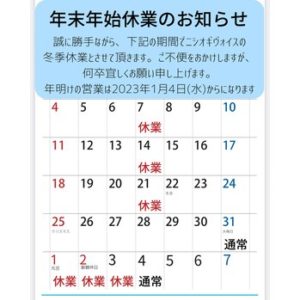 年始は4日からの営業になりますので、宜しくお願い致します!!