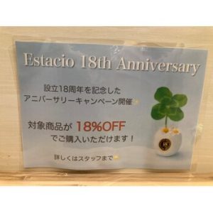 エスタシオ18周年記念で 店内商品18%offキャンペーン実施中です!