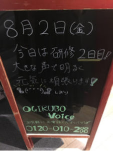 実習生が来ています! 2019/9/14 こんにちは! 荻窪ヴォイス風間です! 昨日から実習生が2人来てくれています!! とてもとても可愛いです! 私もこんな時があったなーと年上の流れの速さを感じています、、 元気な2人に負けずに私も頑張ります!!