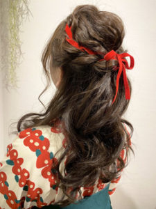 ハーフアップのリボンアレンジ♪♪