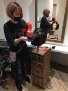 コロナで1カ月遅い店舗出勤ながら、もうワンレンブローの練習です。