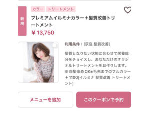 【イルミナカラー+髪質改善トリートメント】のクーポン!