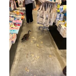 当店向かいの本屋さんに近くの善福寺川から飛んできた?野生の鴨さん?が活歩してました。