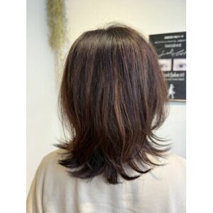 最近顔まわりの内巻きレイヤーからチェンジして、自然な外ハネが入る軽めのスタイル「ミディアムレイヤースタイル」が人気です。