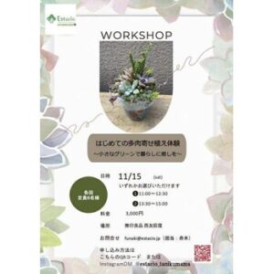 明後日11月15日に、ウチのサザエ社長が無印良品西友荻窪店で多肉植物のワークショップを開催します!