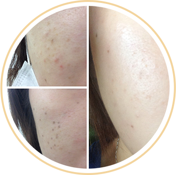 ※メラニンにのみ反応するので、肝斑や真皮層まで達しているシミ、ニキビ跡やアトピー性皮膚炎、虫刺され、ムダ毛処理後の炎症、火傷、レーザー治療のダメージによるもの、色素沈着、真皮メラノサイトーシス(ADM)には効果を発揮できません。