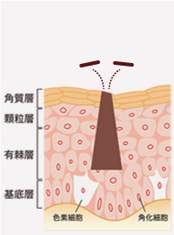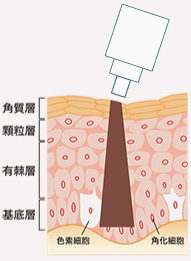 ※表層に存在する一般的なシミ(老人性色素斑)、そばかす、肝斑や真皮メラノサイトーシスの上にできたシミ、日焼けあとにできやすい色素沈着(光線性花弁状色素斑)、脂漏性角化症(盛り上がりのある色素斑)に対してのアプローチが可能です。