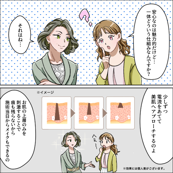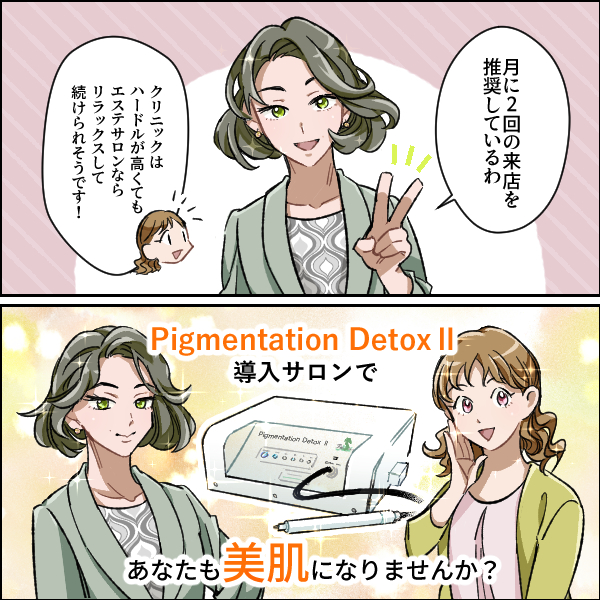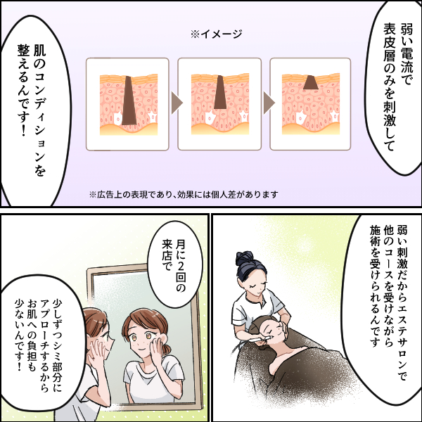 Pigmentation detox は微弱電流で安全。